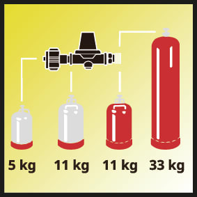 For propane gas cylinders 5 kg, 11 kg, 33 kg and gas soldering equipment with hose connection G 3/8" L